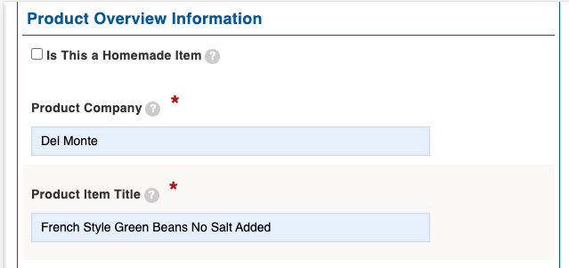 Basic Example: Purchased Can of Del Monte French Style Green Beans No Salt Added
