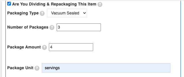 Click the box next to: Are you Dividing or Repackaging this Item?